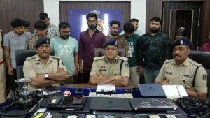 दुर्ग पुलिस ने एक बड़े अंतर्राष्ट्रीय साइबर ठग गिरोह का पर्दाफाश करते हुए सात पुरुष और दो महिलाओं सहित कुल 9 आरोपियों को गिरफ्तार