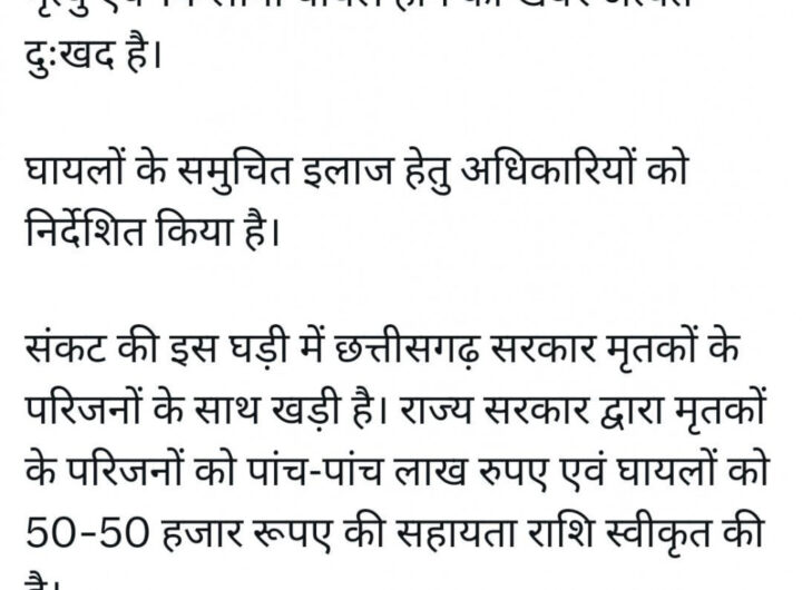 रायपुर : खरोरा सड़क दुर्घटना पर मुख्यमंत्री विष्णु देव साय ने गहरा शोक व्यक्त किया मृतकों के...