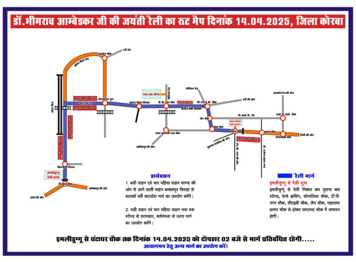 डॉ. भीमराव आंबेडकर जी की जयंती रैली हेतु रूट मैप News डॉ. भीमराव आंबेडकर जी की जयंती रैली हेतु रूट मैप Shivansh khatri April 14, 2025 कोरबा(छत्तीसगढ़ टाइम्स 24×7) दिनांक: 13 अप्रैल 2025 डॉ. भीमराव आंबेडकर जी की जयंती रैली हेतु रूट मैप...Read More