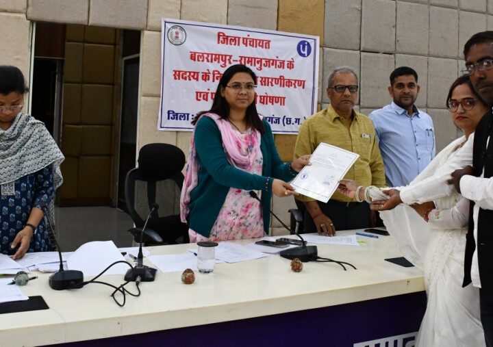 तीसरे चरण के मतदान में नवनिर्वाचित जिला पंचायत सदस्यों को दिया गया प्रमाण पत्र बलरामपुर/कोरबा त्रिस्तरीय पंचायत...
